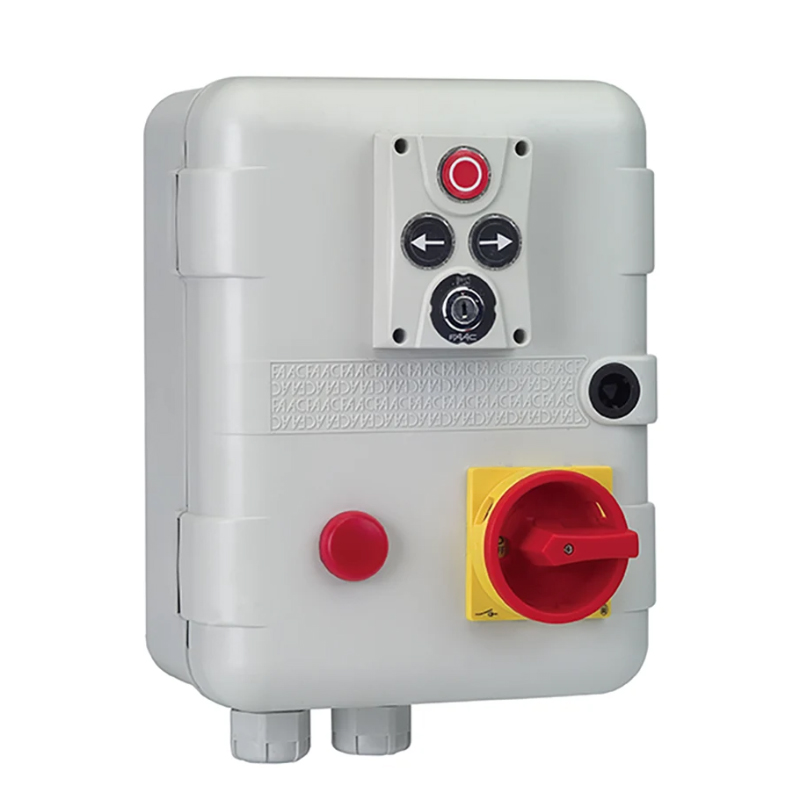 Faac 402502 – блок управления EB 540 BPR (402502) в корпусе со встроенной панелью управления XB300 и тумблером. Используется для подключения и управления электроприводами секционных ворот 380 В, фотоэлементами и аксессуарами.