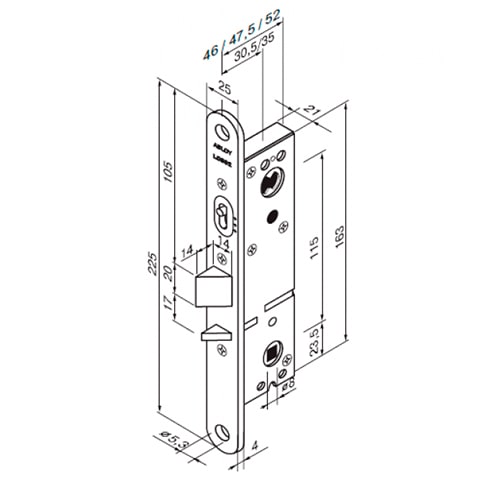 Выход ригеля составляет 14 мм. Задание режима автоматического запирания осуществляется при помощи переключателя, расположенного на переднейпланке замка. Замок оборудован защитой переключателя перевода режимов. Переключение режимов замка возможно только при повороте ключа.