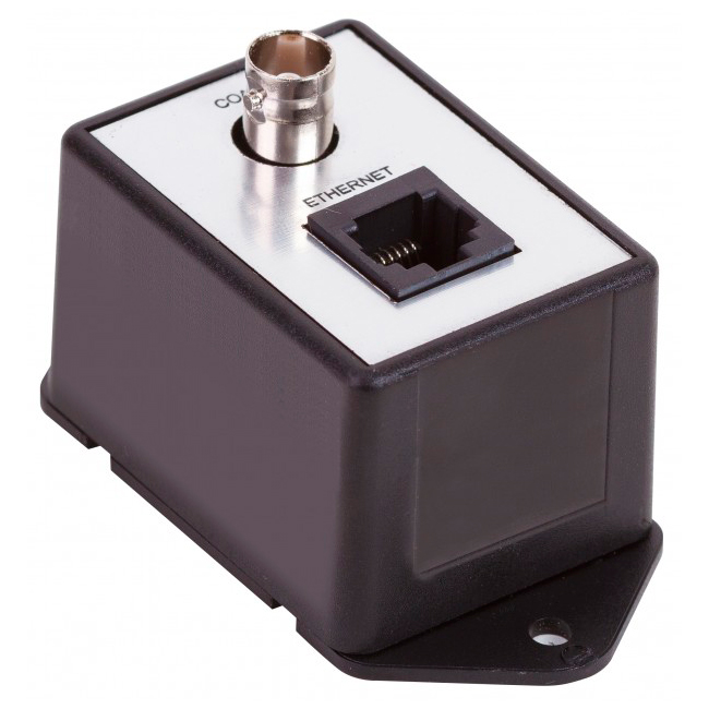- вход Ethernet — RJ45 разъем, выход Coax — BNC-разъем;