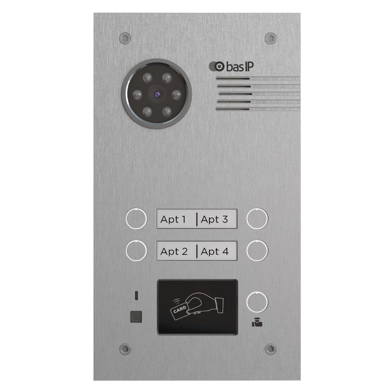 BA-04MD (серебро) – многоквартирная IP вызывная панель на 4 абонента с механическими кнопками.