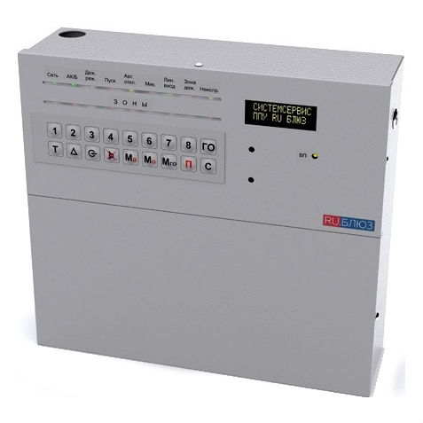 ППУ RU БЛЮЗ ББ — базовый блок пожарного прибора управления, имеющий 8 основных зон оповещения и 2 служебные зоны. Поддерживает до 8 линейных блоков в зоне. Имеет два порта RS-485, 2хЛЗ (30В), вход ручного запуска.