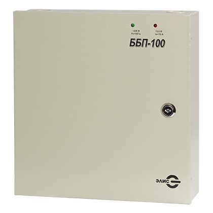 ББП-100 исп.1 – источник бесперебойного питания, предназначенный для установки в помещении и использующийся для электропитания широкого спектра радиоэлектронного оборудования напряжением 12В (системы контроля доступа, видеонаблюдения и ОПС). Блок относится к I классу защиты от поражения электрическим током по ГОСТ 12.2.007.0-75 и рассчитан на круглосуточную работу.