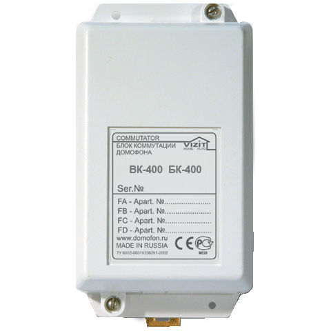 БК-400 – блок коммутации домофона, предназначен для подключения абонентских устройств к подъездной линии связи домофонов VIZIT.