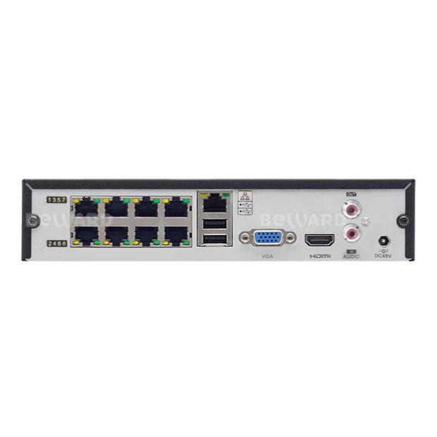 BK0108H2-P8 – 8-канальный IP-видеорегистратор, рассчитан на отображение, запись, хранение и воспроизведение видео с 8 IP-камер, с возможностью подключения 8 IP-камер по технологии PoE. Запись и воспроизведение видео выполняется в форматах H.265/H.264 High/Main/Baseline Profile с разрешением до 8 Мп. Предусмотрена возможность подключения накопителя объемом до 10 Тб. Предустановленная ОС Linux обеспечивает надежность работы системы видеонаблюдения в целом.