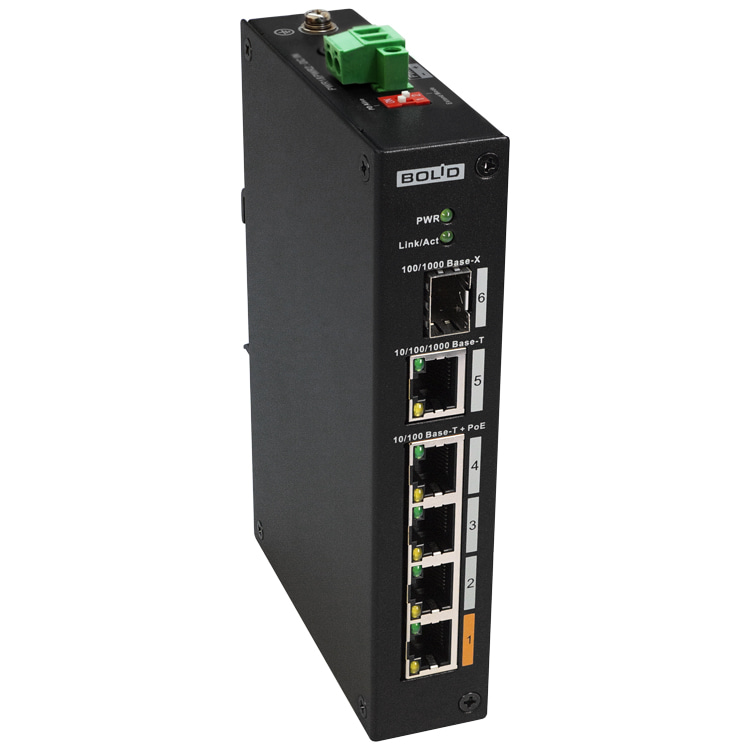 Bolid SW-104 – сетевой коммутатор, предназначен для соединения нескольких узлов компьютерной сети в пределах одного или нескольких сегментов сети. Поддержка технологии РоЕ позволяет передавать питание на различные устройства и периферию.
