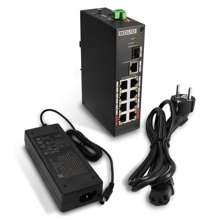 Bolid SW-108 – сетевой коммутатор, предназначен для соединения нескольких узлов компьютерной сети в пределах одного или нескольких сегментов сети. Поддержка технологии РоЕ позволяет передавать питание на различные устройства и периферию.