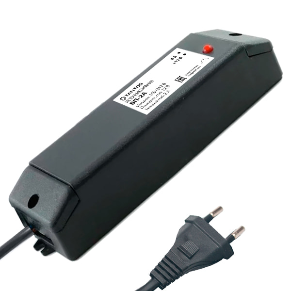 БП-2А – блок питания 12 B в пластиковом корпусе, с регулировкой выходного напряжения, защитой сети от помех. Шнур питания 220 В входит в комплект поставки устройства.