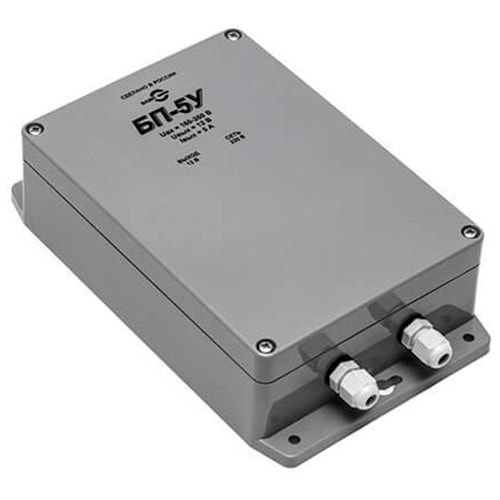 БП-5У – источник питания уличного исполнения, предназначен для электропитания устройств и приборов напряжением 12 В и рассчитан на установку на открытом воздухе.