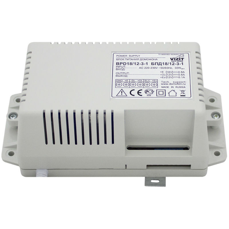 БПД18/12-3-1 – трехканальный блок питания с раздельным питанием замка, телекамеры, домофона/видеодомофона VIZIT;