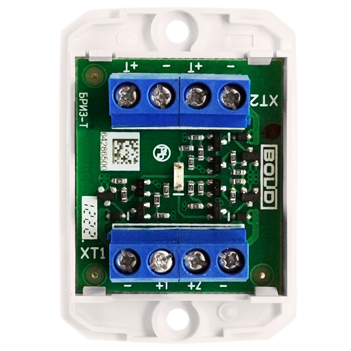 БРИЗ-Т – блок разветвительно-изолирующий предназначен для использования в двухпроводной линии связи (ДПЛС) контроллеров С2000-КДЛ, С2000-КДЛ-2И, С2000-КДЛ-2И исп.01, С2000-КДЛ-2С с целью изолирования короткозамкнутых участков с последующим автоматическим восстановлением после устранения короткого замыкания.
