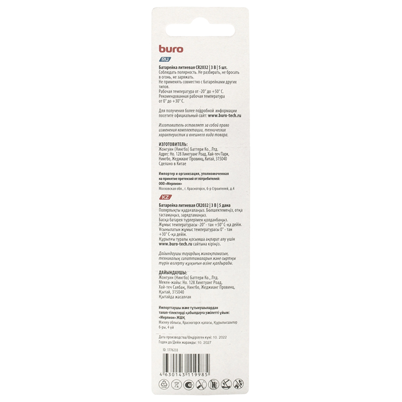 Предыдущий товар Следующий товар Buro Lithium CR2032 батарейка (5 шт) 190 ₽ Количество товара Buro Lithium CR2032 батарейка (5 шт) В корзину Артикул: УТ000053714 Категории: Системы питания, Элементы питания Бренд: Buro Описание Детали Описание Buro Lithium CR2032 (5 шт) – батарейка. Основные характеристики: количество в комплекте: 5 шт; тип батареи: литиевая; семейство: Lithium; форм-фактор: CR2032; тип упаковки: блистер; напряжение: 3 В. Детали Производитель Buro Похожие товары Быстрый просмотр Быстрый просмотр Системы питания, Аккумуляторы, УниверсальныеDTM 1207 аккумулятор 7Ач 12В Delta 1772 ₽ В корзину Быстрый просмотр Нет в наличии Быстрый просмотр Системы питания, Элементы питанияER14505 батарейка 3.6В Ritm 720 ₽ Подробнее Быстрый просмотр Нет в наличии Быстрый просмотр Системы питания, Элементы питанияCR2032 батарейка Varta 100 ₽ Подробнее