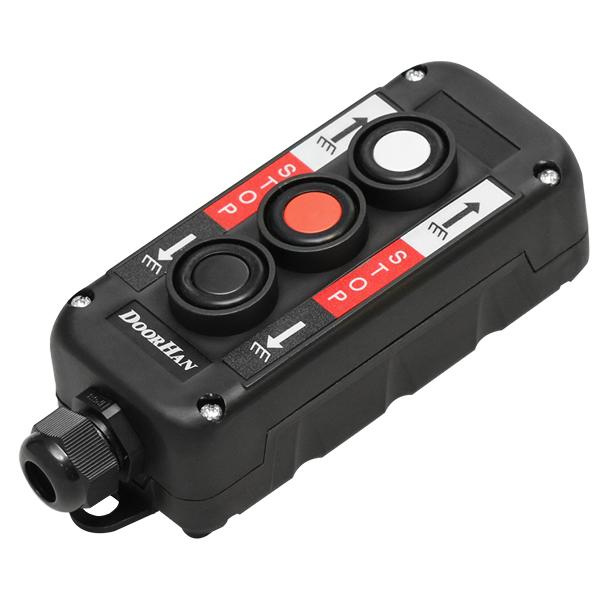 BUTTON3 – трехпозиционный пост управления, предназначен для управления вальными приводами для секционных ворот. Одна кнопка поста отвечает за открытие ворот, другая — за закрытие. Кнопка «стоп» позволяет немедленно остановить ворота в любом положении полотна.