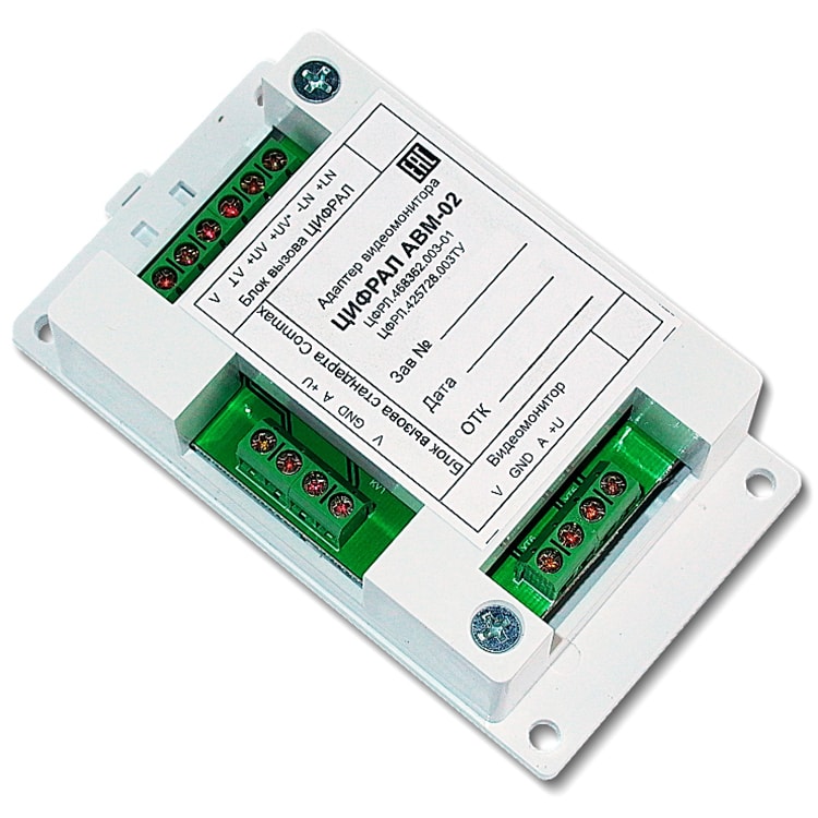 АВМ-02 – адаптер для 4-проводных видеомониторов обеспечивает качественную и стабильную связь координатно-матричных многоабонентных подъездных домофонов ЦИФРАЛ серий CCD-2094.1, CCD-2094.1M, CCD-2094.1И с индивидуальными видеомониторами импортного производства (COMMAX, KOCOM), а также подключения дополнительно индивидуального блока вызова типа COMMAX, KOCOM.
