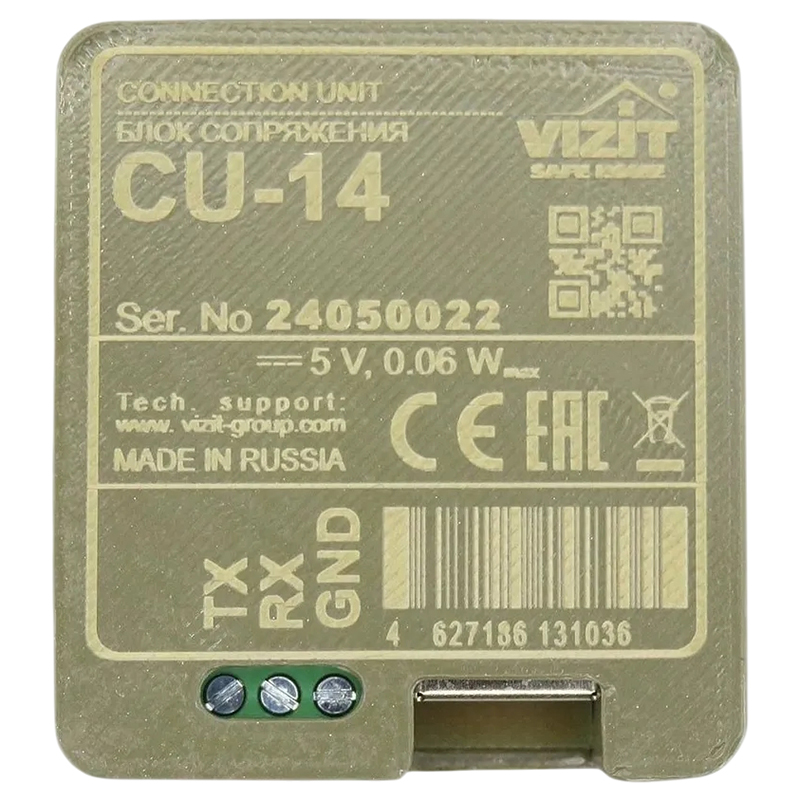 CU-14 – блок сопряжения, предназначен для обновления программного обеспечения устройств VIZIT, имеющих данную функцию.