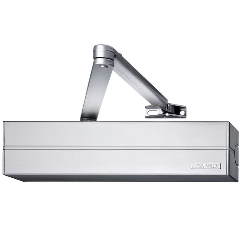 DC340 Нержавейка – дверной доводчик для крупногабаритных, внутренних и наружных дверей с максимальным весом 120 кг и максимальной шириной дверного полотна 1400 мм. При комплектации скользящим тяговым устройством максимальный вес двери составляет 80 кг, а максимальная ширина дверного полотна 1100 мм.