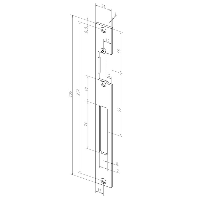 Eff-Eff 690 HZ (69035-01) – длинная запорная планка с отверстием под защелку и вырезом под засов.