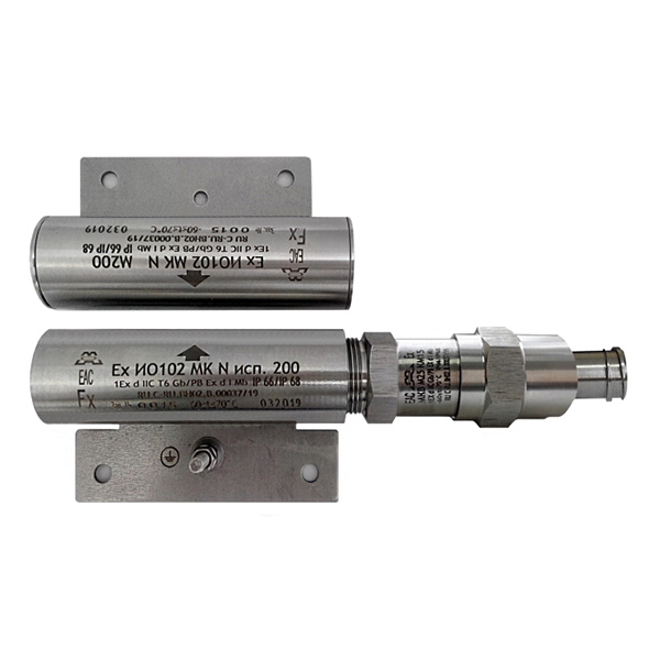 Ex ИО102 МК N исп.300 М-200 – извещатель охранный точечный магнитоконтактный взрывозащищенный для контроля положения частей конструкций и механизмов, конструктивных элементов зданий и сооружений на открывание или смещение, выполненных из магнитных (стали и сплавов) или немагнитных материалов (дерева, пластика, алюминия) с последующей выдачей извещения о тревоге на приемно-контрольный прибор или оконечное объектовое устройство системы передачи извещений.