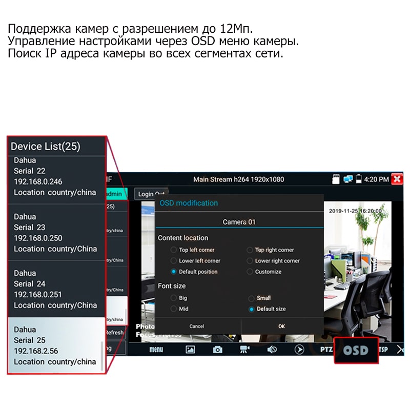 Основные возможности и параметры гибридного CCTV видеотестера: