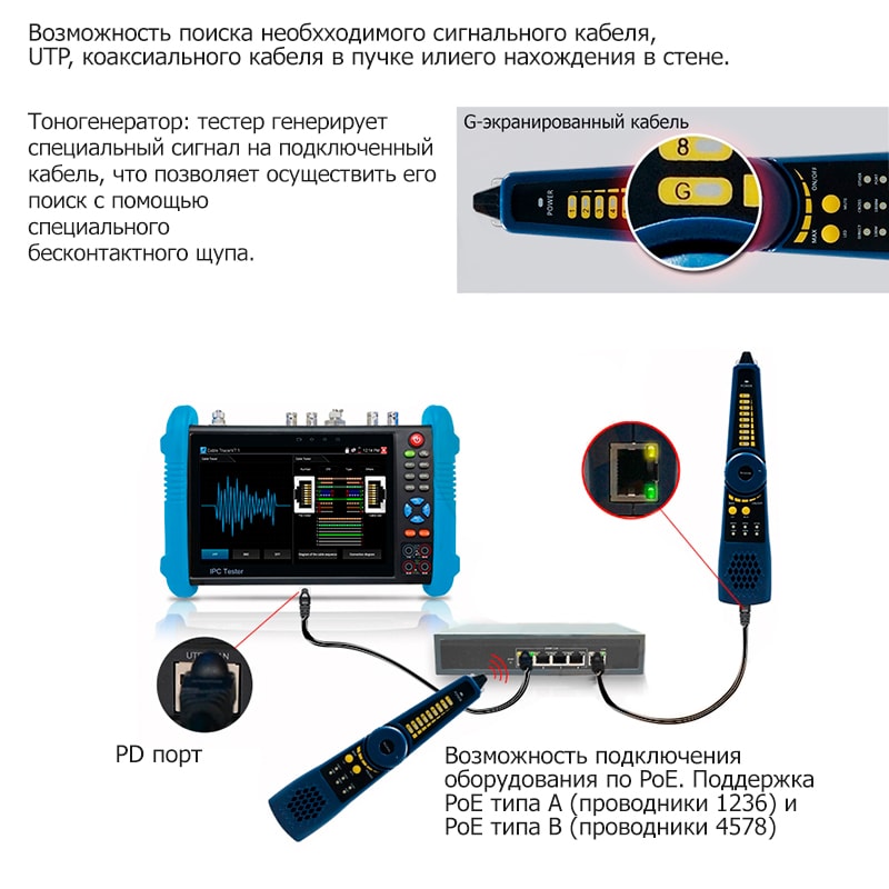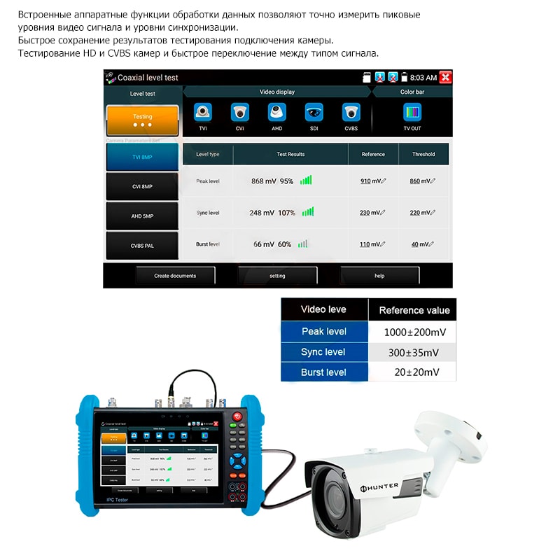 Основные возможности и параметры гибридного CCTV видеотестера:
