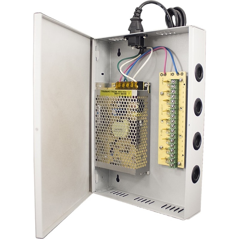 FE-DDH-9ch-5/12 – блок питания в металлическом, прочном и надежном корпусе. Имеет 9 выходов × 0.5 А для питания видеокамер.