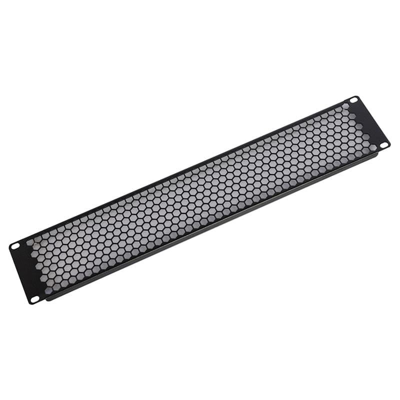 ФП-2.4-9005 – перфорированная фальшпанель в шкаф 19″, высота 2U. Предназначена для блокировки свободного пространства вертикальных (юнитовых) направляющих, препятствует механическому воздействию на кабельные каналы.