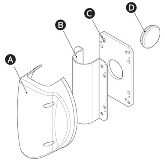 G03004 – кронштейн крепления стрелы круглого сечения G0402/3, укомплектованный пластиной крепления стрелы, декоративной накладкой и заглушкой для стрелы.