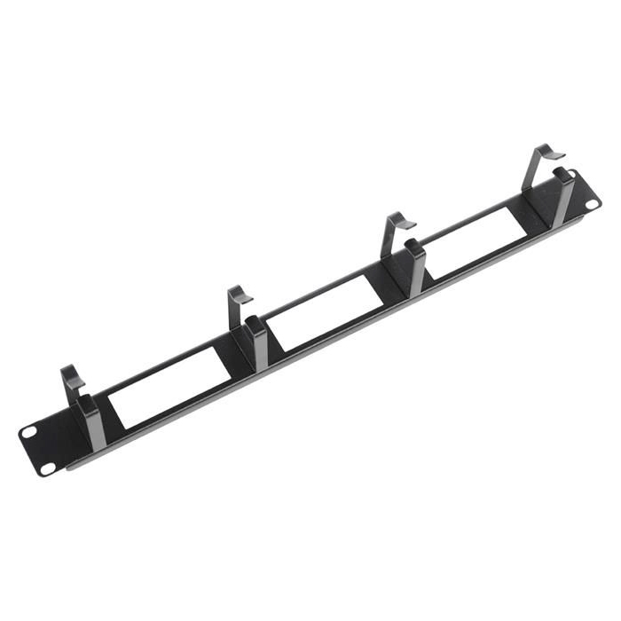 ГКО-О-4.62-9005 – горизонтальный органайзер, предназначен для удобного размещения коммутационного кабеля. Выполнен из цельнометаллической панели высотой 1U с четырьмя приваренными кольцами. Имеет три дополнительных окна для прокладки кабеля, удобен для организации коммутационного кабеля при плотном размещении оборудования. Имеет порошково-полимерное покрытие черного цвета.