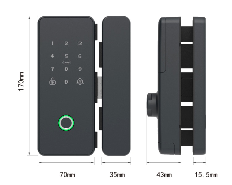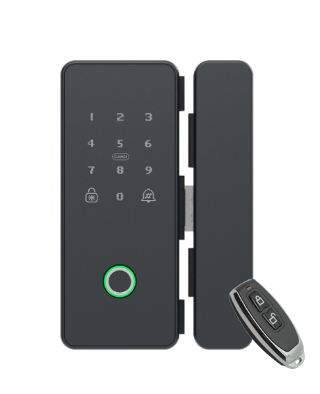 Биометрический накладной замок для установки на стеклянные двери. Замок можно установить как на раздвижные так и на распашные одностворчатые стеклянные двери с толщиной стекла 10-12мм без сверления.