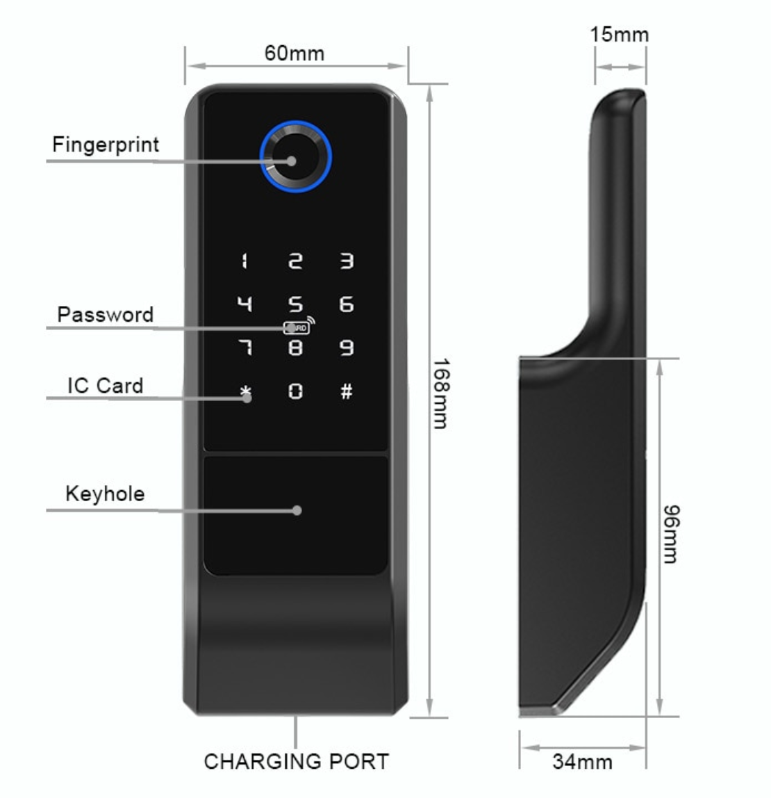 В замки c APP TTLOCK встроен Bluetooth модуль, который позволяет управлять замком на расстоянии до 10 метров. Вы сможете открывать/закрывать замок с помощью телефона через bluetooth, удалять существующие пароли, посмотреть кто, каким способом и в какое время открывал замок и видеть уровень заряда батареек, находясь рядом с замком.