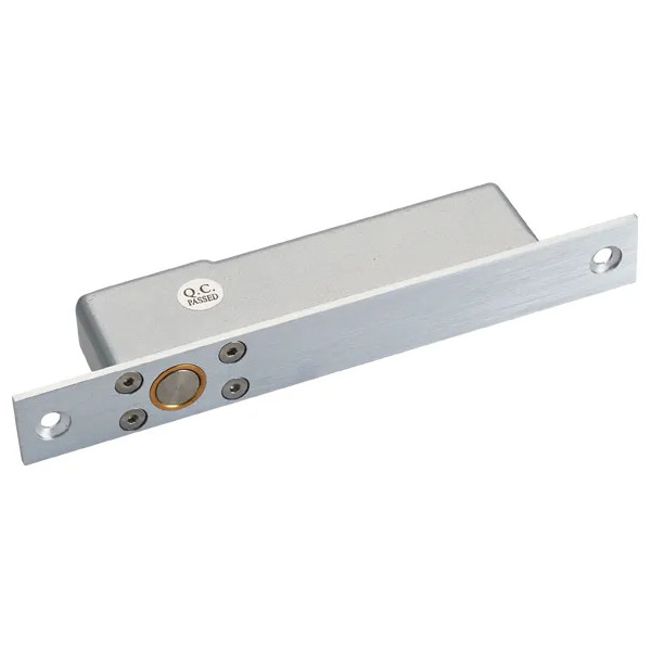Замок оснащен магнитным контактом (дальность до 8 мм), благодаря которому ригель выходит только после остановки двери в закрытом положении. Может использоваться для дверей, открывающихся внутрь, открывающихся наружу и маятниковых.