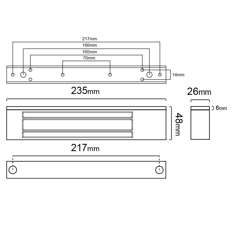 - габаритные размеры 235×48×26 мм;