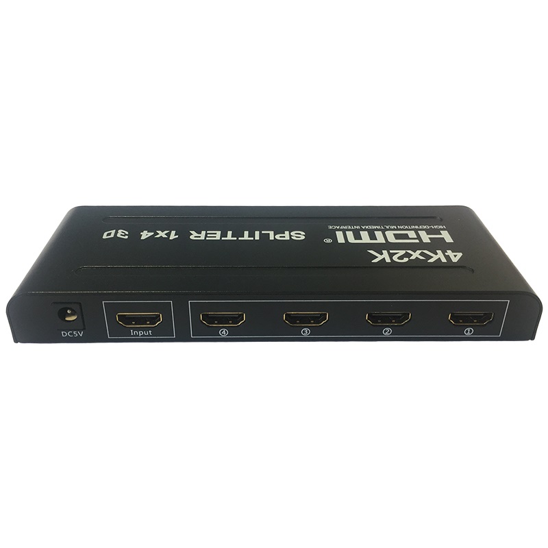 HN-SP14 – разветвитель (сплиттер) HDMI видеосигнала с 1 на 4 канала. Позволяет подключать к одному источнику HDMI до четырех устройств вывода. Данный разветвитель поддерживает высокое разрешение UHD (4K), 3D формат изображения и различные цифровые аудио форматы. Максимальная длина кабеля подключения HDMI на вход составляет 15 метров, а на выход 25 метров. Для работы сплиттера требуется источник питания 5В постоянного тока, который входит в комплект поставки устройства.