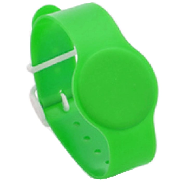 IL-18E – браслет с резиновым ремешком и застежкой, зеленый цвет. Влаго- и пылезащищенный корпус, что позволяет применять браслет в аквапарках и бассейнах. Застежка позволяет регулировать длину ремешка, что обеспечивает фиксацию как на руке взрослого человека, так и ребенка. Возможность наносить логотип.