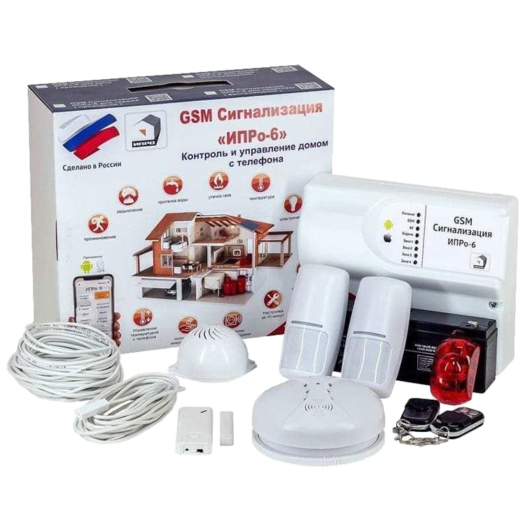 ИПРо-6 (для дома беспроводной) – комплект GSM сигнализации для обеспечения безопасности имущества и возможности управления электроустройствами в доме. Систему можно легко расширить, добавив дополнительные датчики. Комплект является беспроводным. Это существенно сокращает время на установку и настройку.
