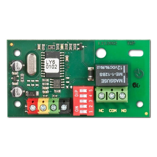 JA-111N – модуль PG выхода адресного типа с малой мощностью, представляющий собой один релейный переключаемый выход с параметрами NC или NO. Выход программируется через переключатель DIP (это один выход из 32 имеющихся выходов PG).