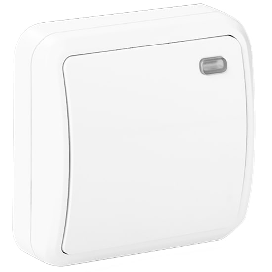 Располагает 2 кнопками и светодиодным индикатором, который может сигнализировать о нажатии на кнопку при активации или включении выхода PG (горит красный/зеленый свет). Также располагает выборочной функцией запоздалой активации аварийной сигнализации (активацию можно отменить, повторно нажав на кнопку). Об отсрочке сигнализации свидетельствует мигающий красный светодиод.