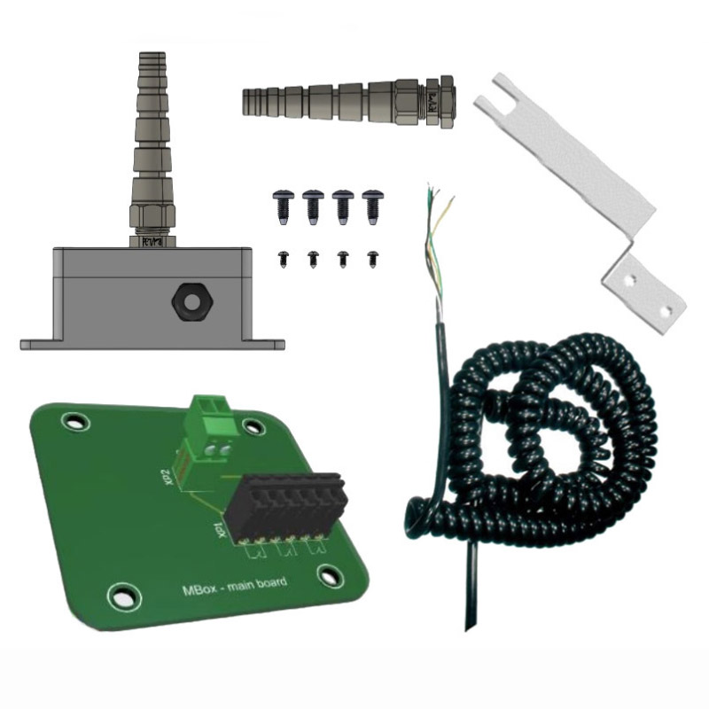 MBOX – комплект коммутационный, применяется в составе секционных гаражных и промышленных ворот ALUTECH. Используется для электрических соединений датчика калитки и выключателей ослабления троса, установленных на полотне ворот.