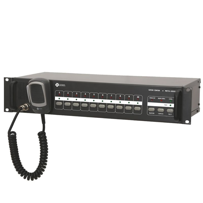 МЕТА 17555 – блок обратной связи в комплекте с тангентой для установки на стену, предназначен для обеспечения двухсторонней полудуплексной связи постов связи зон пожарного оповещения с диспетчером в составе приборов управления оповещателями (ППУ) и других технических средств систем оповещения, управления эвакуацией и диспетчерской связи.