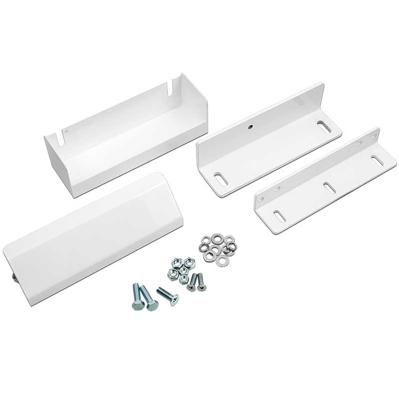Монтажный комплект состоит из уголка корпуса, уголка якоря, кронштейна, кожуха, кожуха кронштейна и элементов крепежа.
