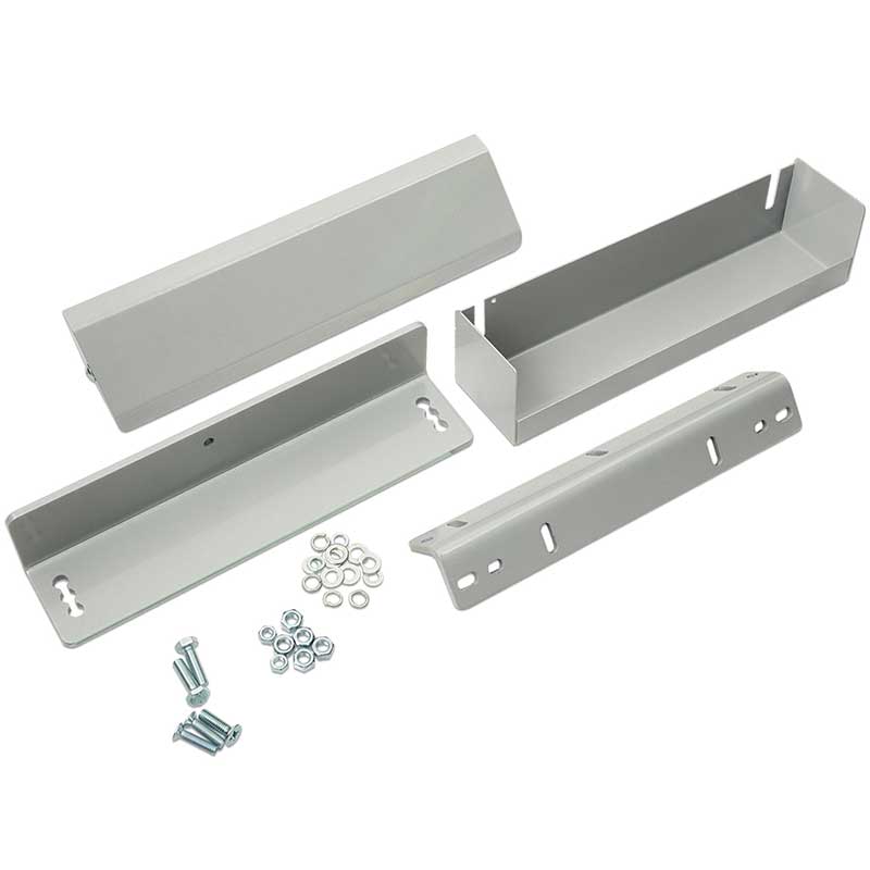 Монтажный комплект состоит из уголка корпуса, уголка якоря, кронштейна, кожуха, кожуха кронштейна и элементов крепежа.