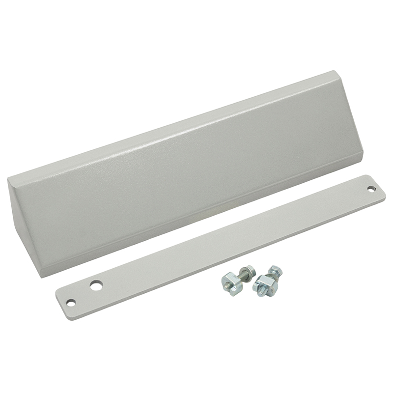 МК AL-300PR — комплект монтажа серого цвета для AL-300PR на L-уголке с декоративным кожухом в цвет замка, с элементами крепления и планкой М300.