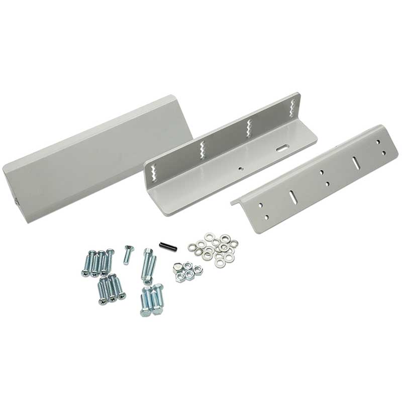 Монтажный комплект состоит из уголка для крепления корпуса, уголка для крепления якоря и кронштейна с декоративным кожухом с элементами крепежа.