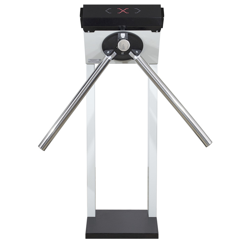 Model A Sigur (MF) – стоечный электромеханический турникет-трипод со встроенным контроллером SIGUR и двумя считывателями бесконтактных карт формата Mifare и с автоматическими планками «Антипаника» из нержавеющей стали, которые поставляются в комплекте и являются частью турели турникета.