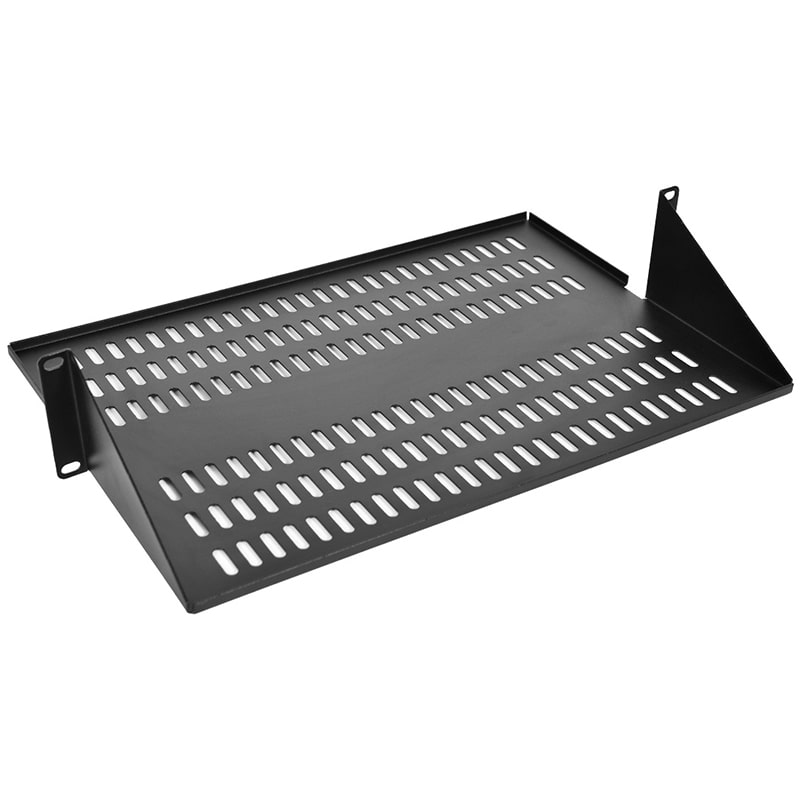 МС-40/2-АК-9005 – полка для размещения нестандартного оборудования в шкафах и открытых стойках. Имеет 2 точки крепления для фиксации к вертикальным направляющим. Перфорирована для свободного прохождения охлаждающего воздуха.