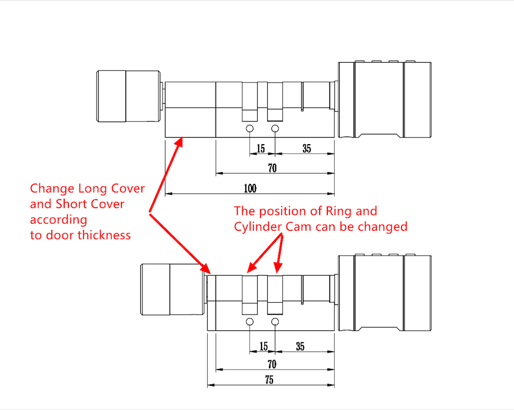 Принцип работы: в режиме ожидания наружная ручка электронного цилиндра свободно проворачивается. Внутренняя ручка электронного цилиндра всегда находится в сцепленном состоянии с механизмом цилиндра.