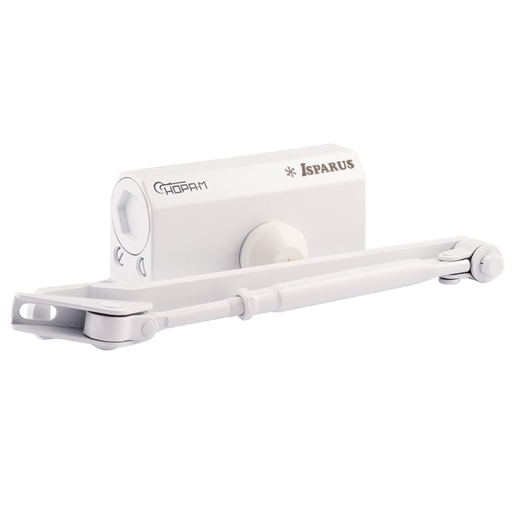 410F ISPARUS – дверной доводчик с функцией фиксации двери в открытом положении предназначен для установки на межкомнатные и входные двери весом от 15 до 60 кг.