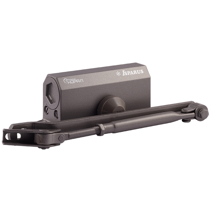 410F ISPARUS – дверной доводчик с функцией фиксации двери в открытом положении предназначен для установки на межкомнатные и входные двери весом от 15 до 60 кг.