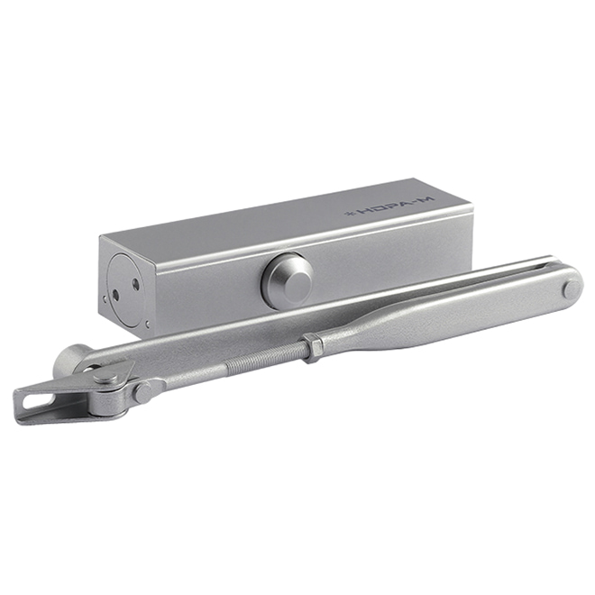 Нора-М 820 (серебро) – дверной доводчик с быстроразъемным рычагом коленного типа рассчитанный на вес двери от 40 до 120 кг.