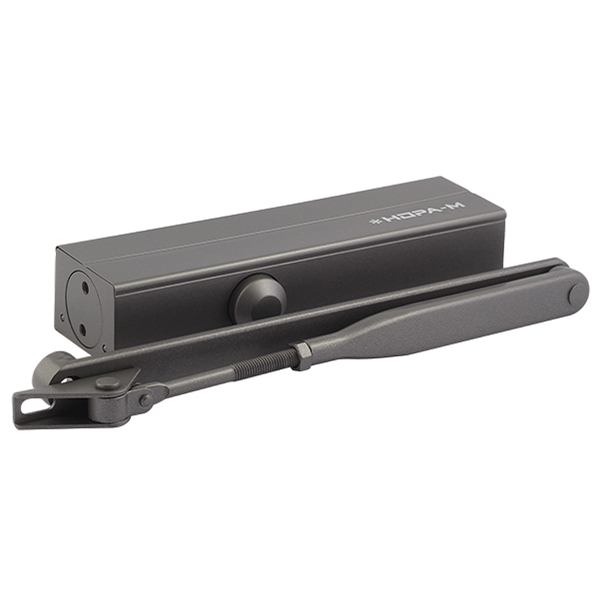 Нора-М 830 BC (графит) – дверной доводчик с ветровым тормозом и быстроразъемным рычагом коленного типа, рассчитанный на вес двери от 40 до 150 кг.