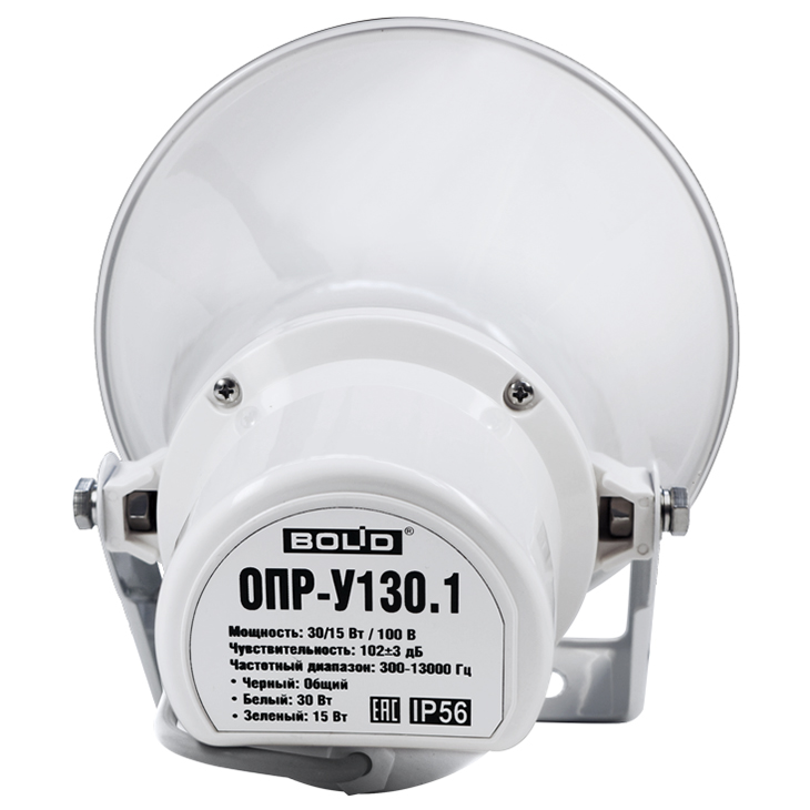 ОПР-У130.1 – рупорный пожарный всепогодный оповещатель, предназначен для передачи речевого оповещения или специальных сигналов в системах оповещения и управления эвакуацией (СОУЭ), а также передачи речевой информации в системах звуковой трансляции с высокоомным выходом (100 В).